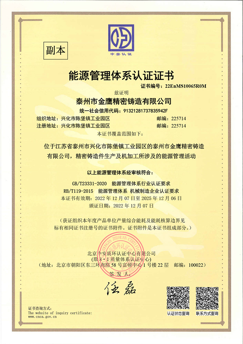 泰州金鹰-环境管理体系证书